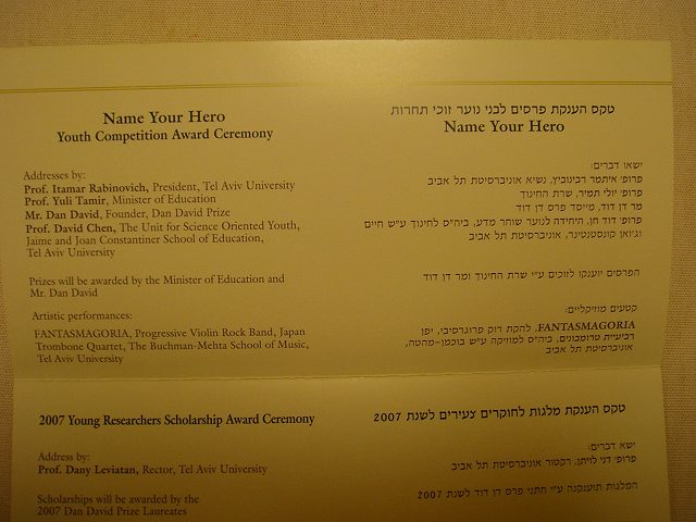 / Dan David Prize Ceremony 2007 Tel Aviv, ISRAEL